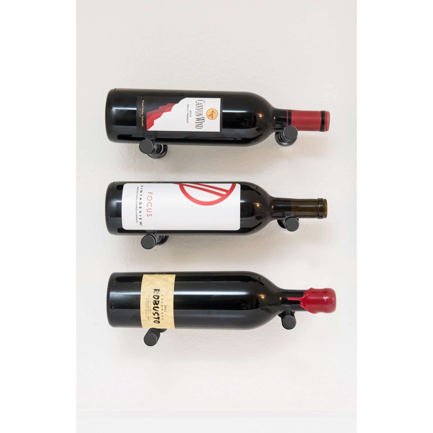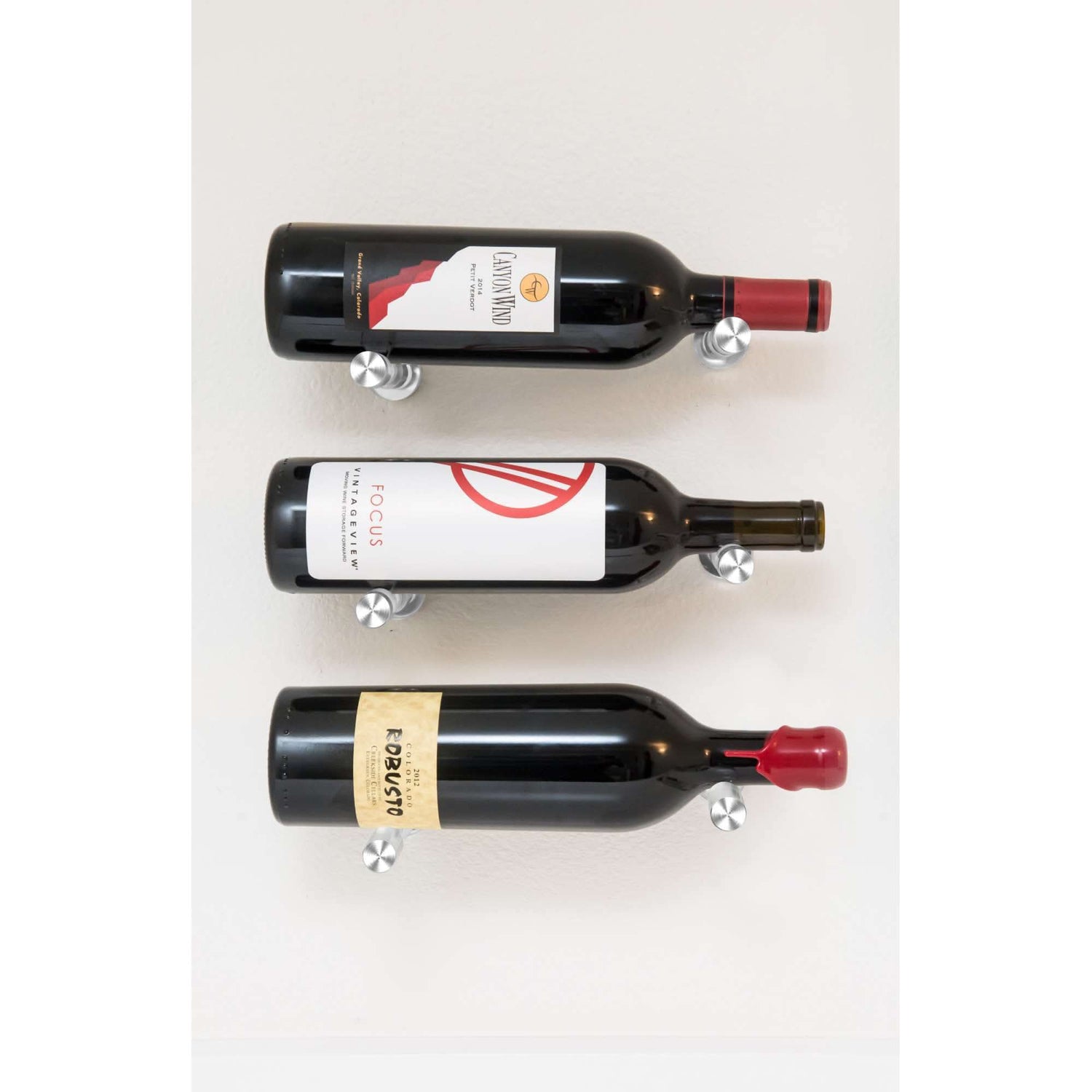 Vino Pins Designer Grid 3×1 (curated wall-mouted metal wine rack display)
