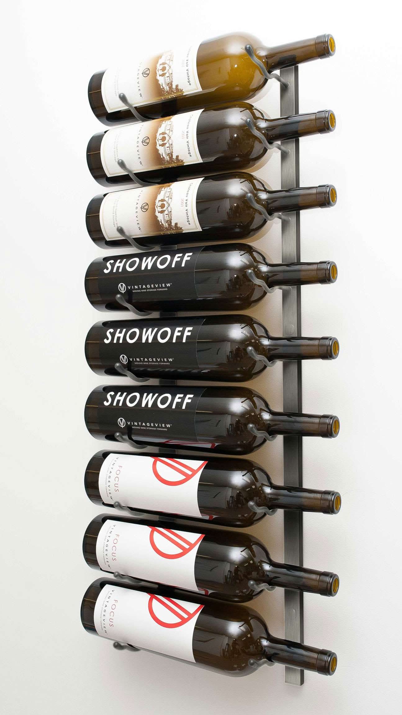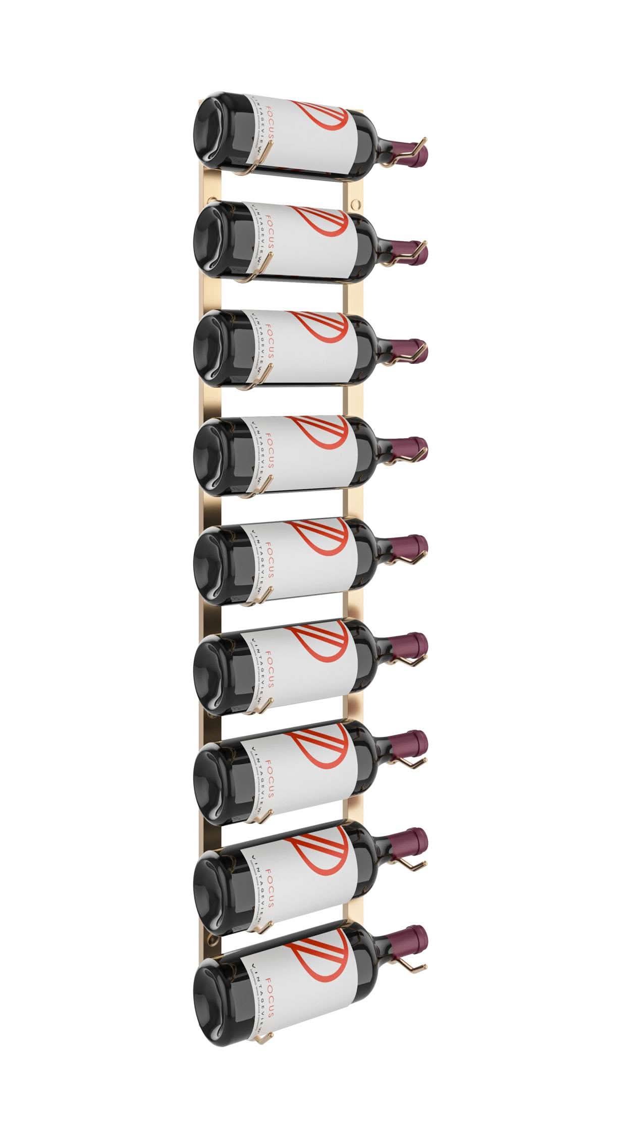 The W Series Mag is a 9-bottle tall, wall-mounted wine rack features airy vertical spacing to store thicker magnums, Champagnes, and Pinot bottles with compelling style.