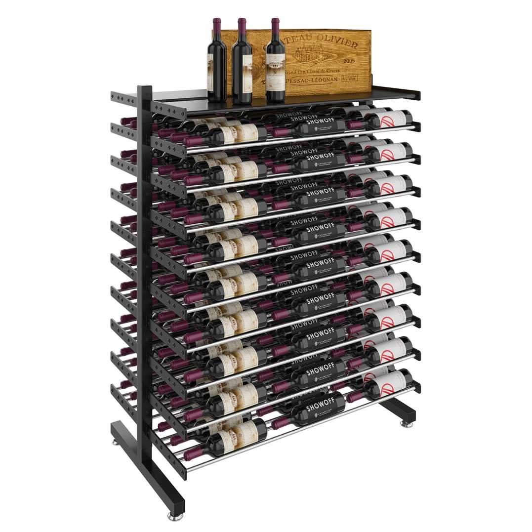 With the stylish addition of a Shelf platform atop, the Island Display Rack creates a unique design addition to the room by offering a platform for wooden cases, decanters, or feature bottles. Below, artistic labels are shown off in an easy-to-access display. This double-sided unit can serve as a wine cellar centerpiece or create remarkable retail aisles.