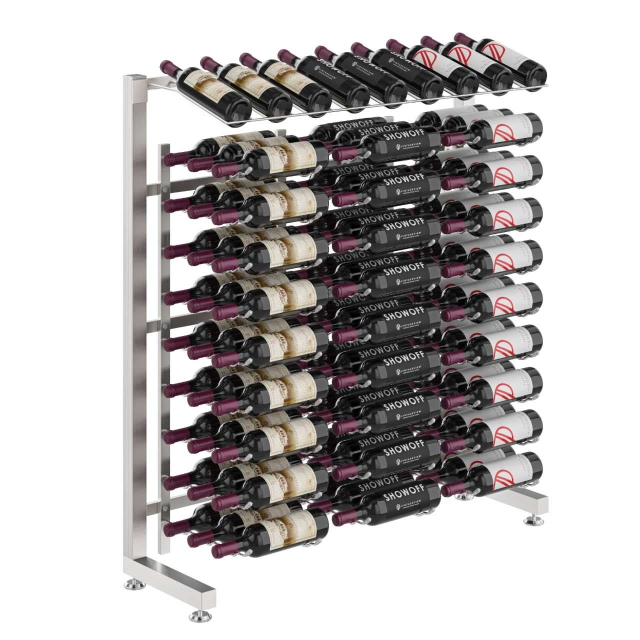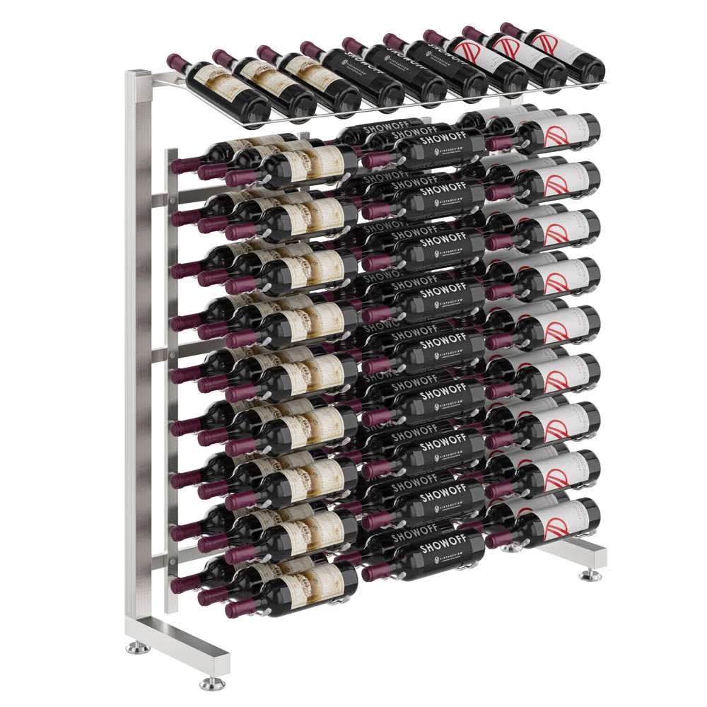 Standing less than 4-feet in height, the smallest of our Island Display Racks highlights 9 bottles in presentation form, while showcasing dozens more bottles on our patented steel wine cradles below.