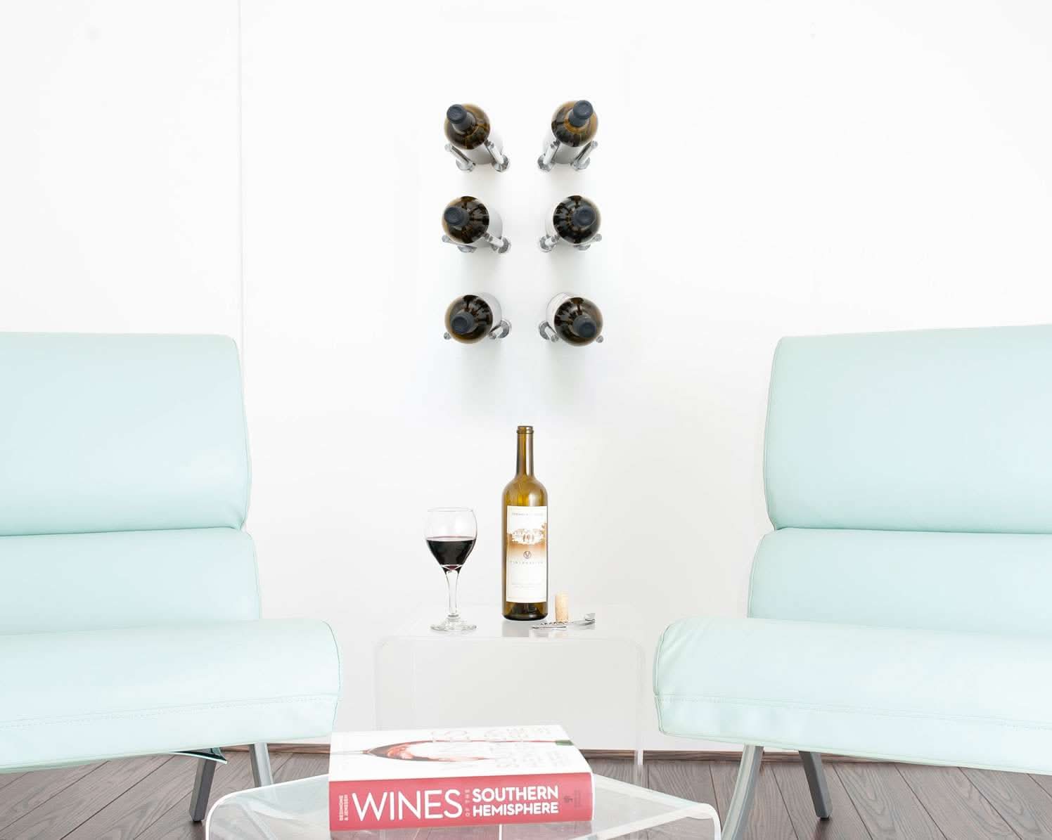 Let your wine float on the wall with the most minimalist wine rack in the VintageView inventory. Vino Rails store wine in classic cork-forward fashion but in the most contemporary way imaginable. These displays feature ultra slim rods jetting out from the wall, allowing bottles to seemingly float on air. Aluminum collars are required for drywall installations and can provide additional aesthetic appeal for masonry or wood mounts.