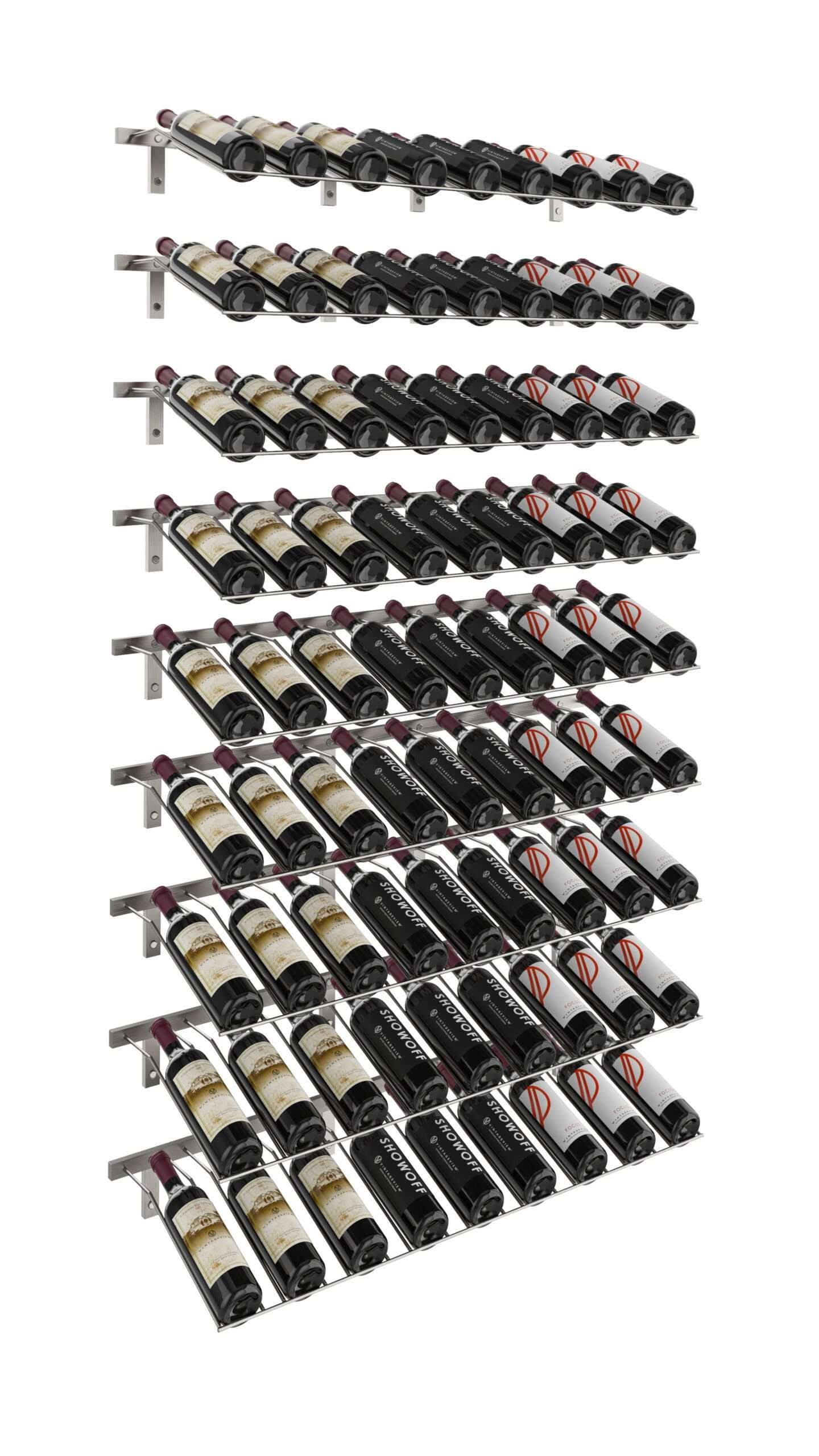 With an innovative take on the label-foward look, the Waterfall wine rack kit provides a distinctive style that doubles as significant wine storage. By vertically layering several W Series Presentation Row wine racks, the final display style mimics the look of a cascading waterfall.
