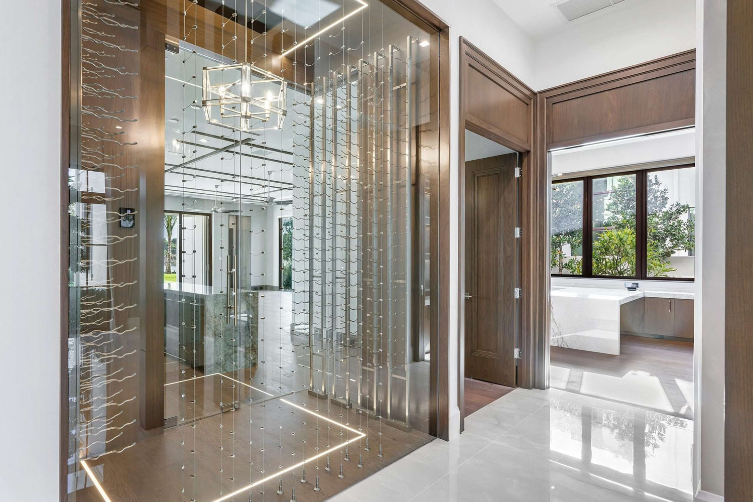 This versatile hardware piece allows for floor-to-wall, wall-to-floor, or all-to-wall installs with 2 inches of clearance between the wine racks and the wall.
