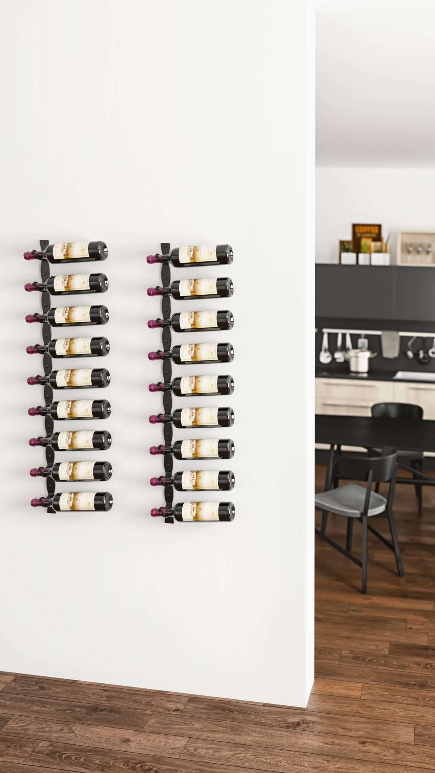 Modernizing the classic riddling rack wine storage style, the R Series features elegant wine rack options that hold wine bottles by the neck to create the most minimalist wine storage available on the wall or floating from celling.