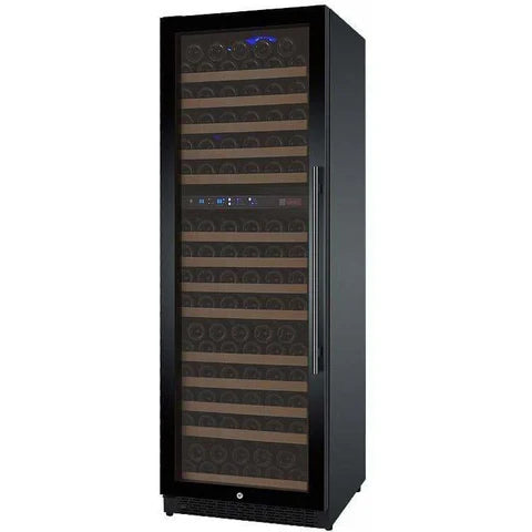 This FlexCount Series Wine Cellar Refrigerator from Allavino was designed with wine connoisseurs in mind, giving you a wine refrigerator that not only effectively stores a diverse wine collection in it's optimum conditions, but also showcases it in style. Two individually controlled temperature zones can be easily monitored and adjusted using a digital display with push button controls, allowing you to store both red and white wines at their perfect temperatures. You can also use these controls to turn on or off the cool blue LED lighting to illuminate your bottles. FlexCount Series shelving has been constructed from durable metal to be thin enough to provide more storage space than most similarly sized wine cellar refrigerators, and features wood slats that gently cradle your bottles and beautiful wood shelf fronts. These wood fronts, along with an all-black interior, give your unit the elegance of a traditional wine cellar along with the convenience of modern innovations.