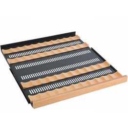Allavino is at the leading edge of shelf design, incorporating revolutionary metal shelves that are strong enough to hold bottles without sagging, yet thin enough to maximize the available space in the cabinet for wine storage. Wood slats refine each shelf and gently cradle each bottle to prevent harmful vibrations from affecting your wine. Each shelf is finished with a stylish wooden front to match the door frame. Each of the shelves glides out smoothly on ball-bearing tracks, so every bottle is easily accessible.